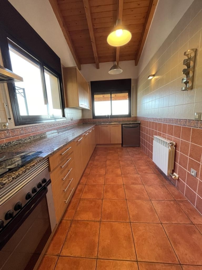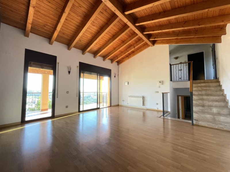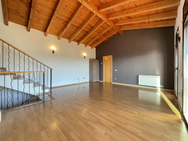 Amplio salón de 28 m² con techos abuhardillados de madera, que aportan calidez y exclusividad, y salida directa a una terraza de 39 m² con zona chill-out y vistas espectacularesCocina: Moderna, espaciosa y luminosa, también con techos de madera y armarios amplios para el chef de la casa